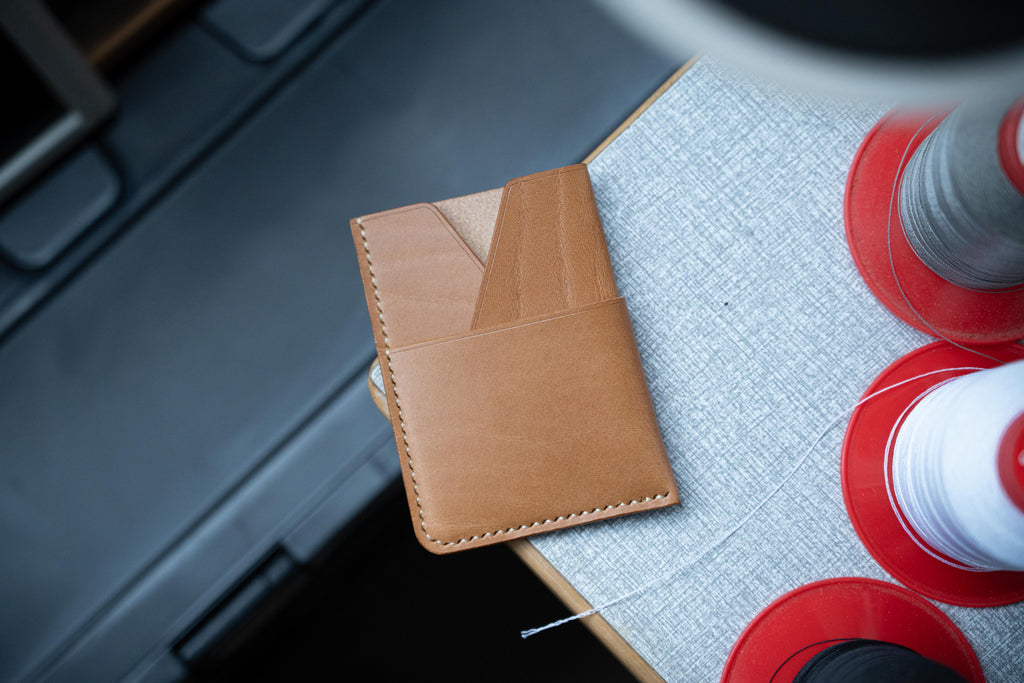 Das Design dieses Kartenetuis ist vom Kimono, der japanischen Nationaltracht, inspiriert. Der Kragen des Kartenetuis dient als Trennwand für Ihre Kreditkarten. Der Bund (Obi) dient als Außentasche und umschließt das gesamte Etui, sodass Sie gefaltete Geldscheine oder zusätzliche Karten hineinstecken können. Das Kimono-Etui besteht aus schwarzem, pflanzlich gegerbtem Buttero-Rindsleder. Wie viele unserer Produkte ist auch dieses Etui handgenäht und die Kanten sind poliert, um ein glattes Finish zu erzielen.